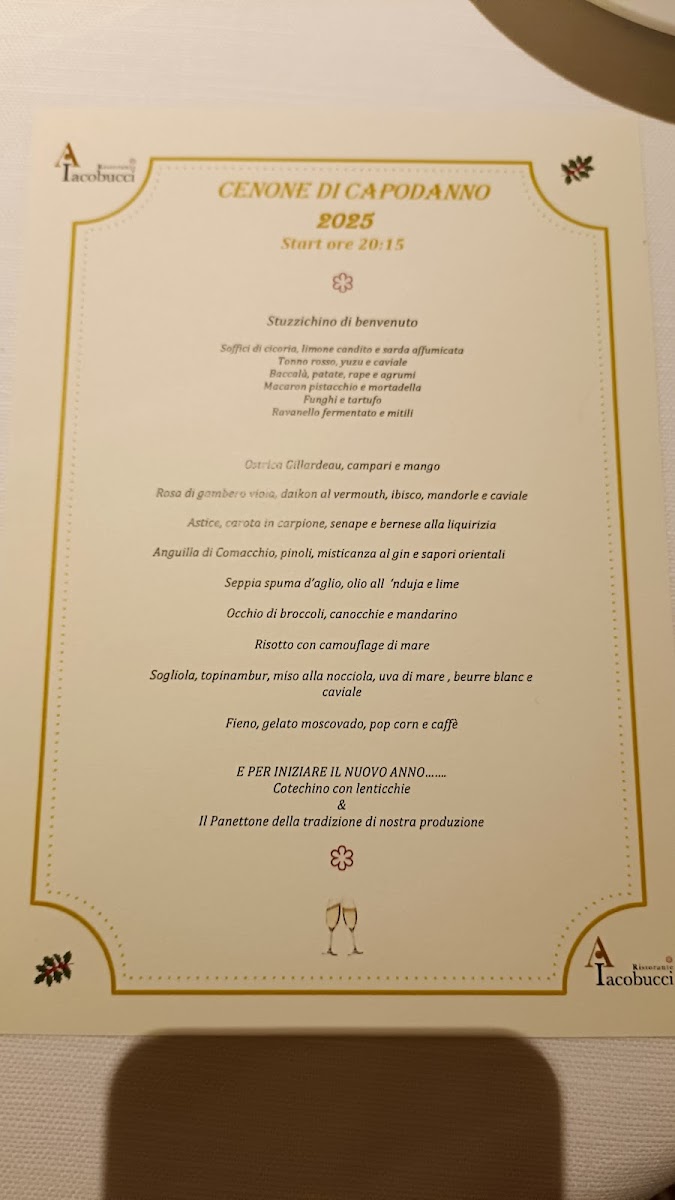 Agostino Iacobucci’s menu is a masterclass in refined Italian cuisine, where each dish showcases both creativity and technical precision. The Antipastino sets the stage with a delicate balance of flavors that tease the palate without overwhelming it. From the pasta offerings, the Tortelli Di Coniglio Con Tartufo Nero impresses with its tender filling and earthy truffle aroma, demonstrating a sophisticated take on traditional recipes. Seafood enthusiasts will be captivated by the Spigola Finocchio Olive E Pernod, a dish that harmonizes the freshness of sea bass with the subtle anise notes of fennel and Pernod, while the Spaghetto Calamaro Aglio Nero E Lime delivers a striking combination of smoky black garlic and bright citrus that elevates the tender calamari. To finish, the Babà Al Ruhm A Lievitazione Multipla offers a perfect balance of sweetness and texture, its multiple fermentations lending a light, airy consistency that melts in the mouth. Each plate reflects a meticulous attention to detail, emphasizing seasonal ingredients and bold yet nuanced flavors, making the menu at Agostino Iacobucci not only a meal but a memorable culinary journey.